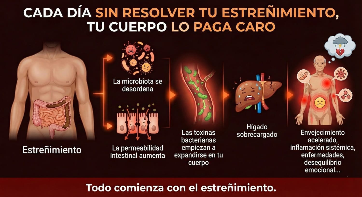 Todo lo tóxico en esas heces está en contacto con tu mucosa intestinal durante mucho más tiempo del que debería.